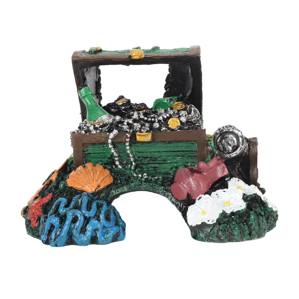 Aquarium Treasure Box Ornament Hideout Cave Lifelike Resin Jewelry Box Decoration for Freshwater