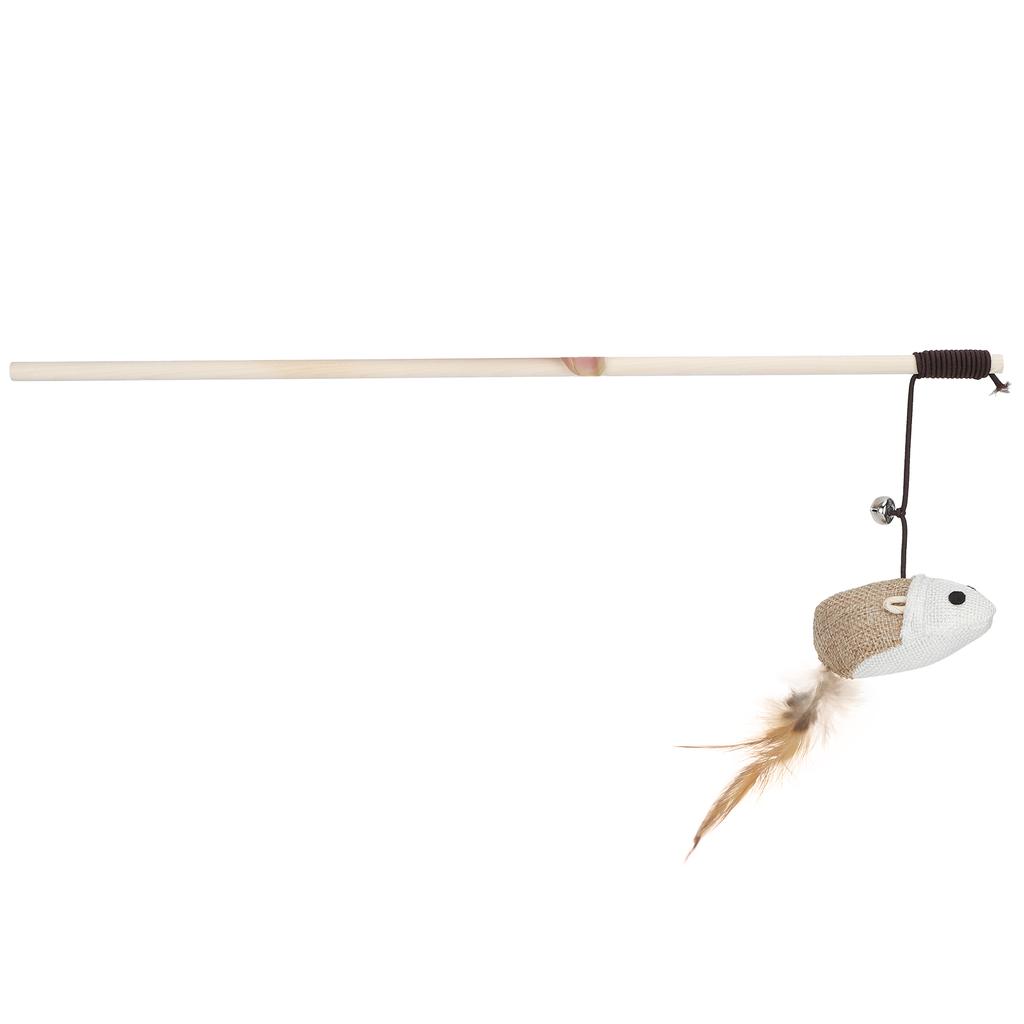 Wooden Cat Funny Stick Wand Pet Teaser Mice Toys with Crisp Bell Feather and Linen Mouse
