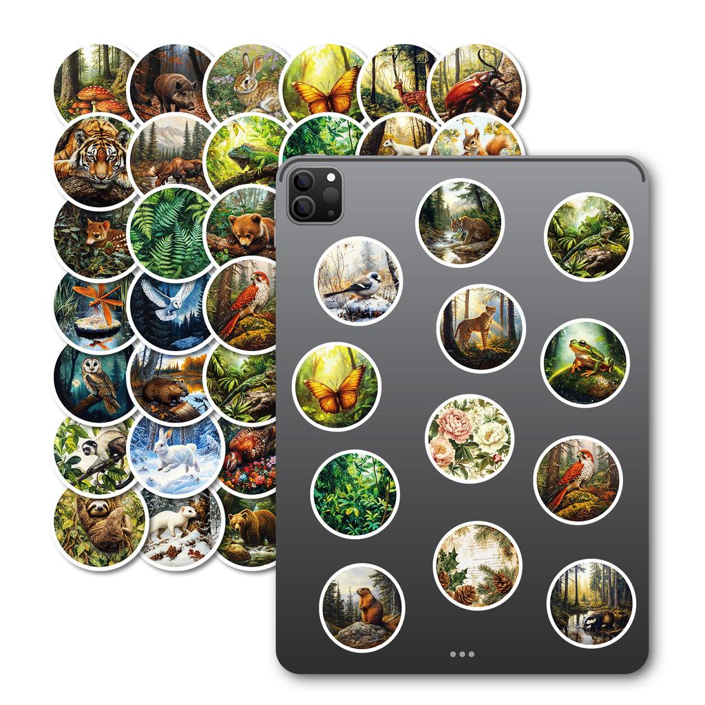 50 Retro-Style Forest Realistic Animal Adventures Stickers Waterproof Decorative Stickers