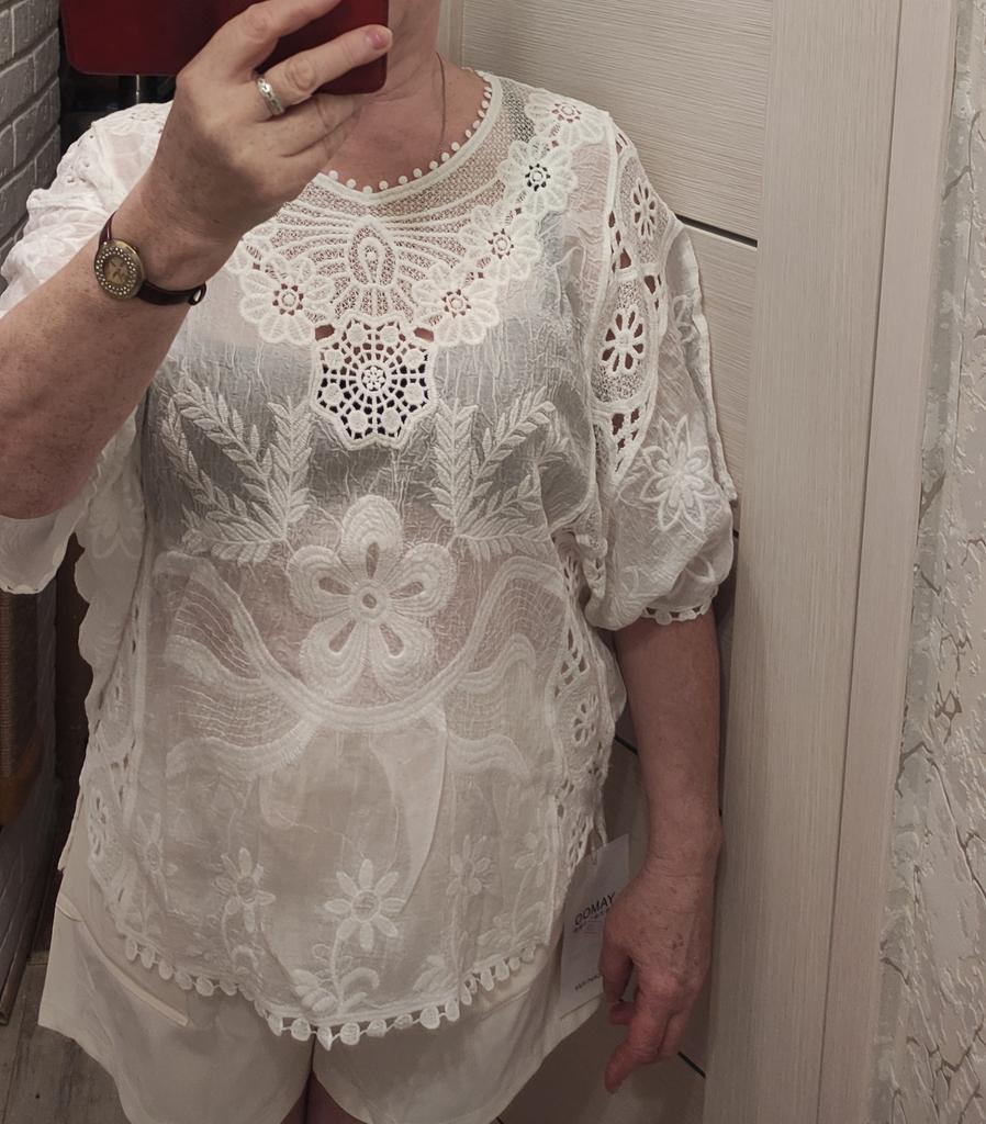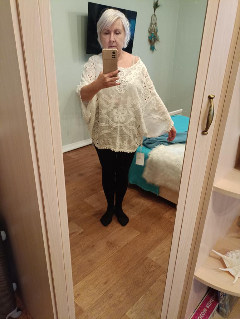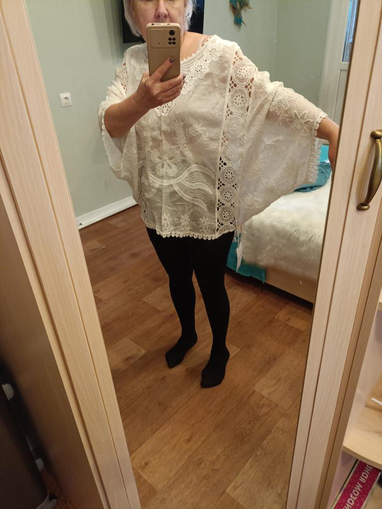 For 50-52-- just right. Great blouse, everything corresponds to the description and photo. Thank you.