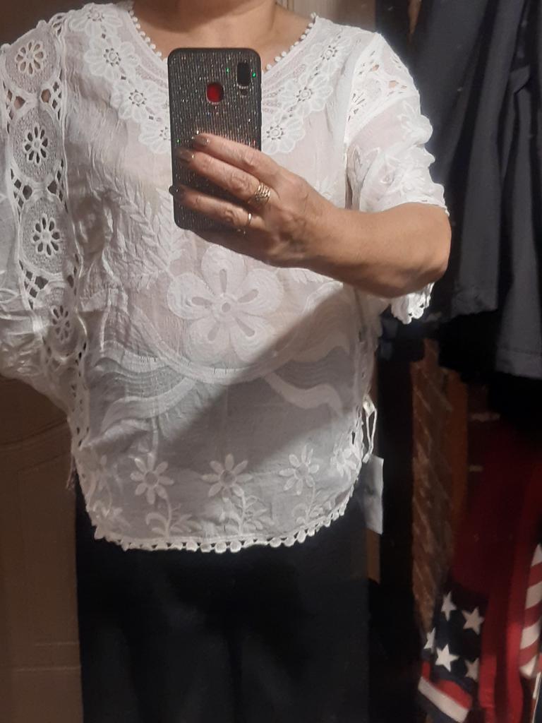 Overall, it's a cool blouse. But there's some discomfort felt in the sleeve area🤔. The photo shows how the 'batwing' sleeve looks in its 'folded state'. Somehow...not very good...It fit a size 52