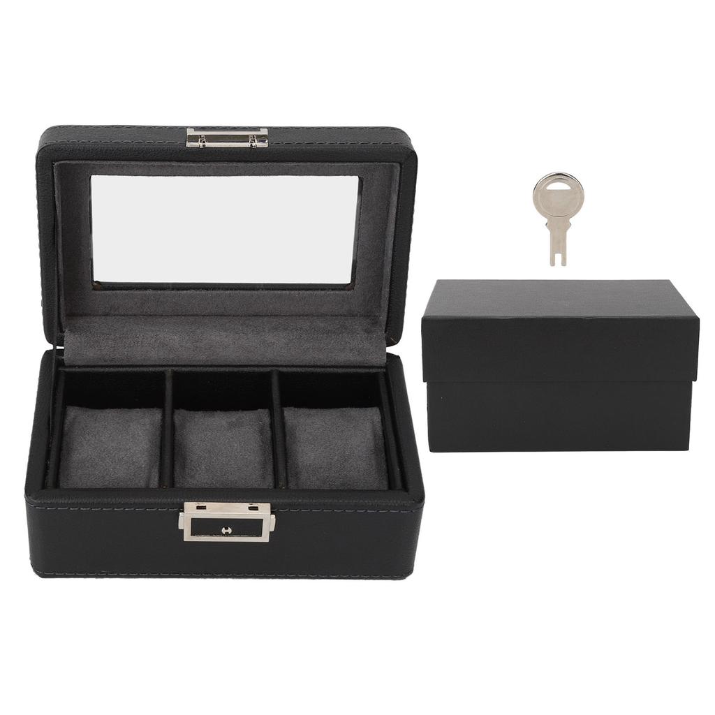 3 Grids Watch Display Case PU Leather Space Saving Single Layer Watch Storage Box for Watch Jewelry