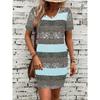 JKASHDK Women's Fashion Summer Spring Colour Block Print Short Sleeve V-Neck Middle Waistline Casual Dresses