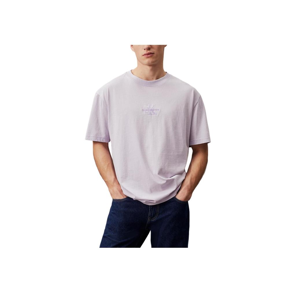 Calvin Klein Jeans Letter Embroidered Solid Loose Round Neck Short Sleeve T-Shirt Men Tops Light-Purple J30J325650-VFR