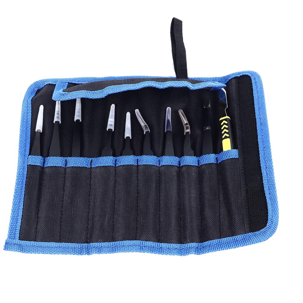 10PCS Set Craft Tweezers Kit Stainless Steel Tip Elbow Soldering Tweezers Kit with Storage Bag