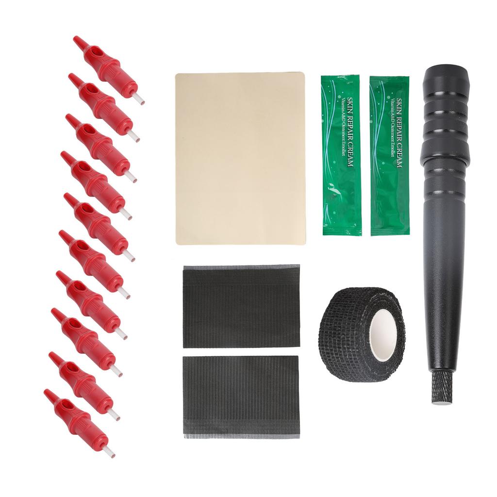 Tattoo Pen Kit Aluminum Alloy Tattoo Stick Pen and 10 Ballpoint Cartridges with Practice Skin