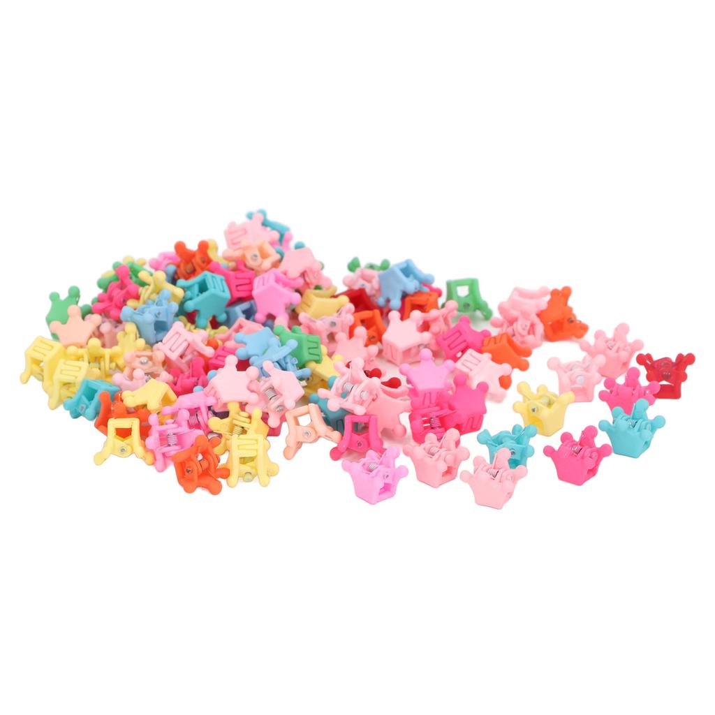 100pcs Mini Crown Hair Claw Clips Colorful Cartoon Strong Hold Lovely Tiny Hair Claw Clips