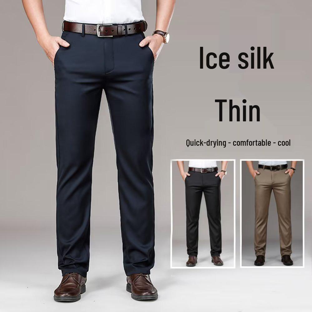 These men's summer trousers are designed for comfort and style, ideal for middle-aged men seeking a polished yet relaxed look. Made from breathable bamboo fiber, they offer a lightweight feel perfect for warm weather. The straight-leg design provides a classic silhouette, making them versatile for both casual outings and business settings. The ice silk finish adds a touch of sophistication, ensuring you stay cool and comfortable all day long.