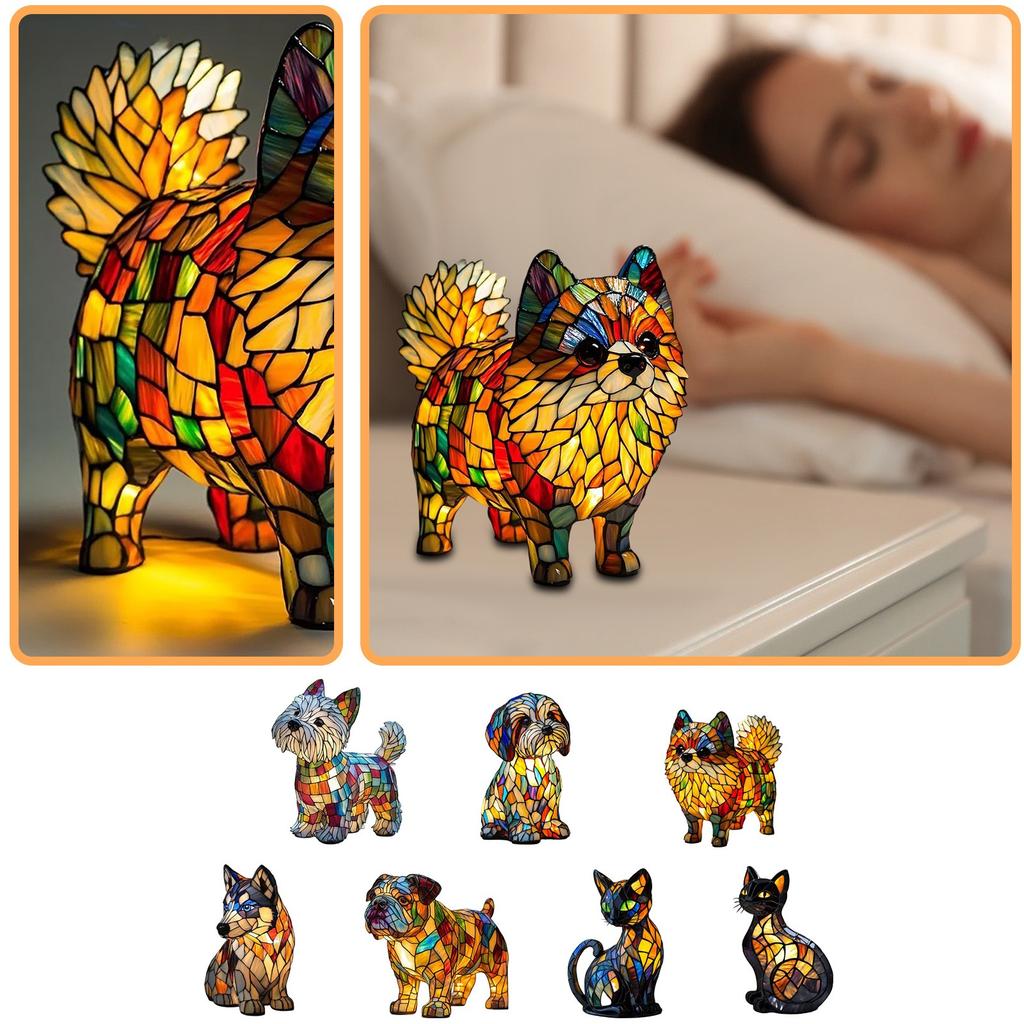 Dog Series Art Night Light, French Lamp, Corgi Lamp, Stained Resin Tabletop Night Light, LED Cute Pet Table, Vintage Animal Home Decor