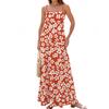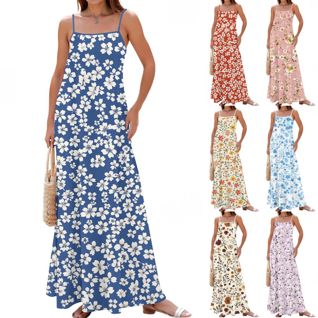 Women's Spring And Summer Casual Fashion Adjustable Suspenders Printed Long Dress