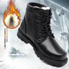 Winter Men's Cotton Shoes Leather Boots Piled Thickened Wool Snow Boots Men's Leather High-top Martin Boots Outdoor