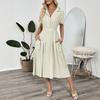 JKASHDK Women's Fashion Summer Spring Solid Color Print Short Sleeve V-Neck High Waist Casual Dresses