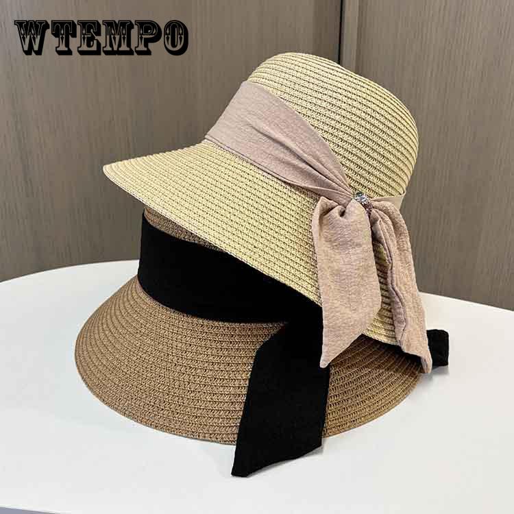 Straw Hat Women Spring and Summer Dome Sunshade Top Hat Sunscreen Sun Hat Fashion Streamer Beach Hat