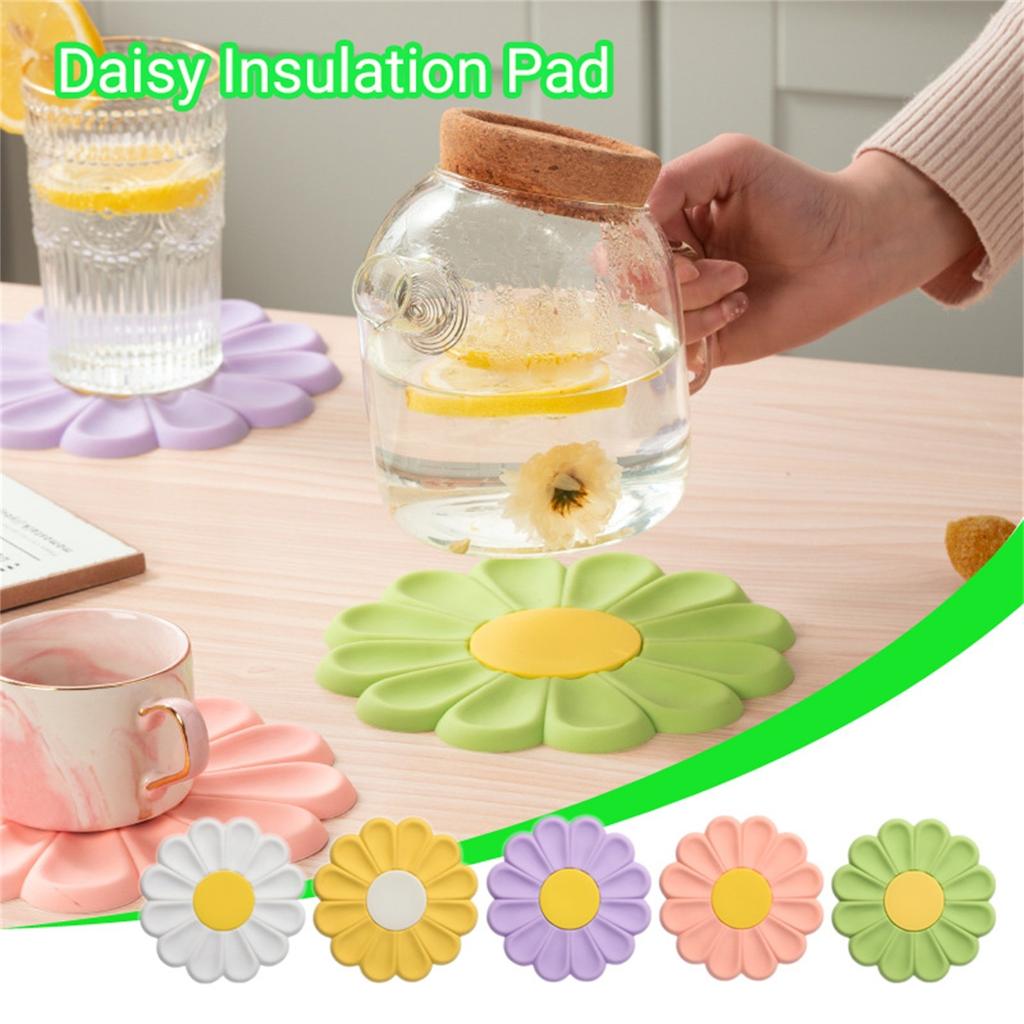 Cartoon Flowers Shape Heat Resistant Silicone Mat Drink Cup Pad Non-slip Pot Holder Table Placemat Kitchen Accessories Gadget