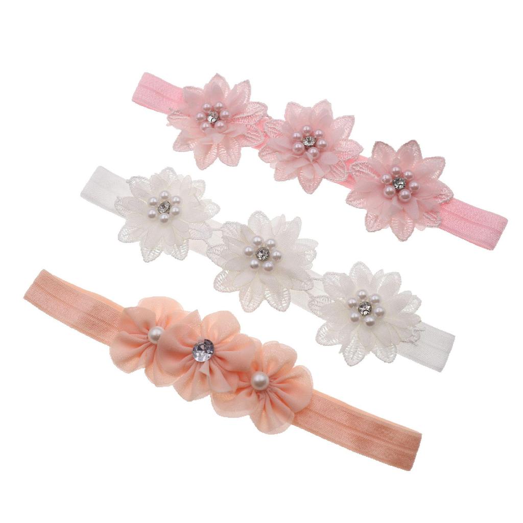 Chiffon Flower Baby Headband with Elastic and Pearls