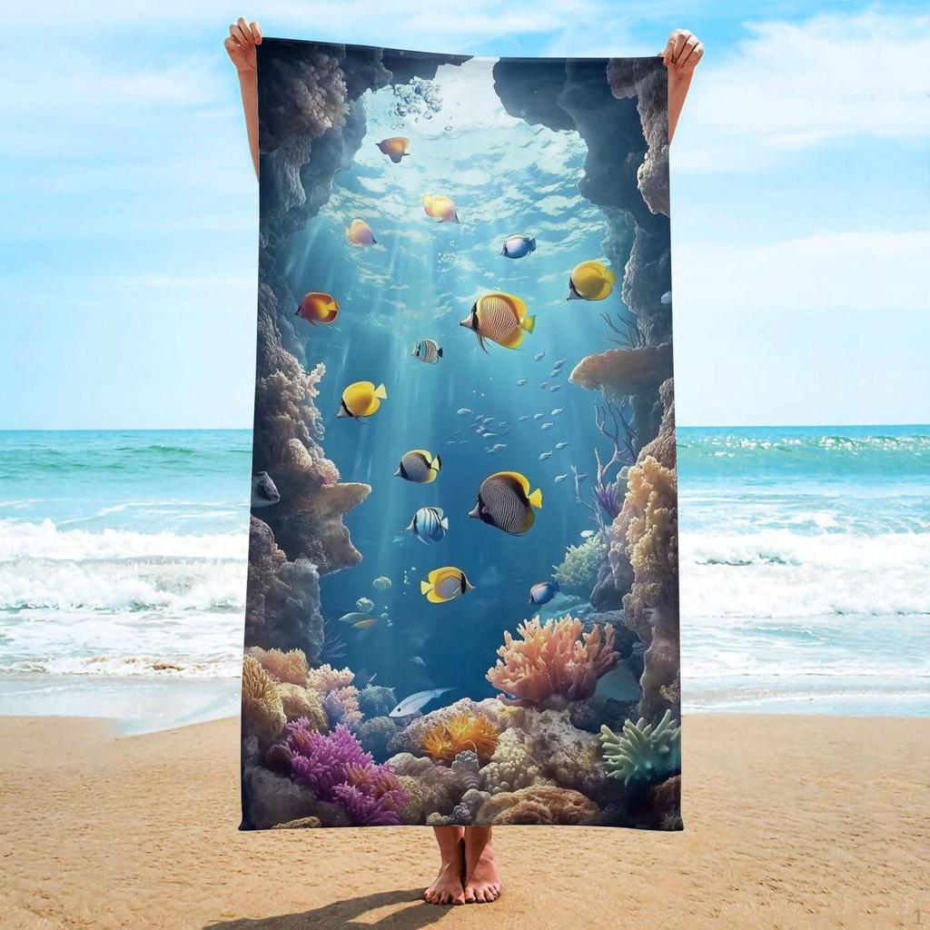 - 【Sea Inspire】: With a blue and lively fishes pattern, Bath Towel turns any beach into a background sharing. Whether it is spread on the sand or draped over your shoulders, it is a fashionable summer accessory
