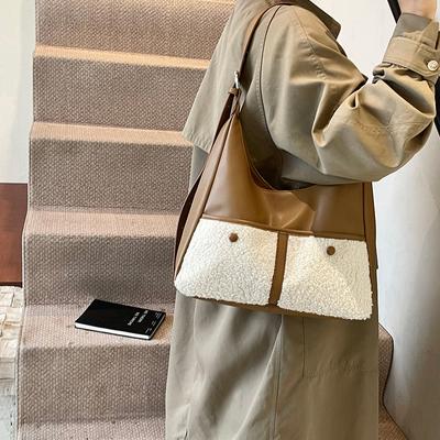 2025 Autumn and Winter New Fashion Trend Lamb Wool Splicing Versatile Tote Underarm Bag Trendy Bag