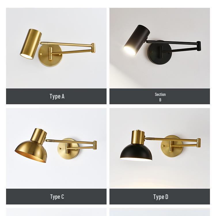 Rocker Telescopic Black Wall Lamp: Folding, Rotating Long Pole for Luxury Study & Bedroom.