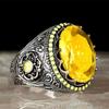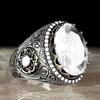 Men's Hip-Hop Retro Engraved Aquamarine Egg-Shaped Ring
