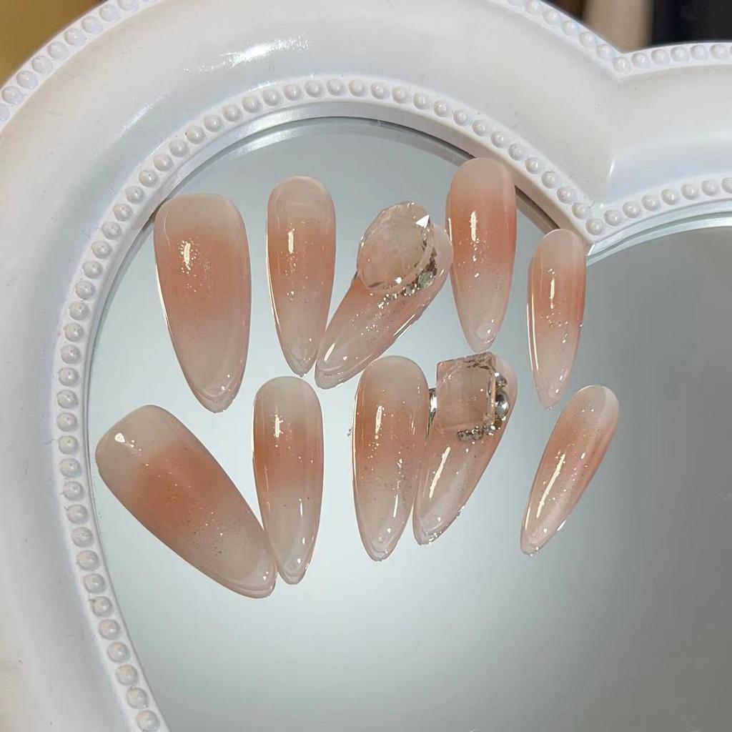 Wearing Armor Pure Handmade Manicure Finished Fake Nail Patch Pure Luxuriant Nude Blush Flash Crystal Diamond