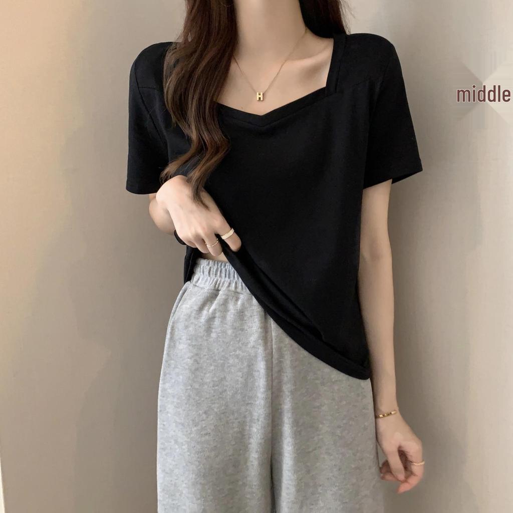 This Women's Summer V-Neck T-Shirt is designed in a loose fit with a classic Korean style, perfect for casual outings. Made from high-quality artificial silk material, it offers a luxurious feel with the softness of milk silk. The solid color design provides versatility, making it easy to pair with various outfits. Featuring short sleeves and a square neckline, this t-shirt combines comfort and style for the warm summer months.