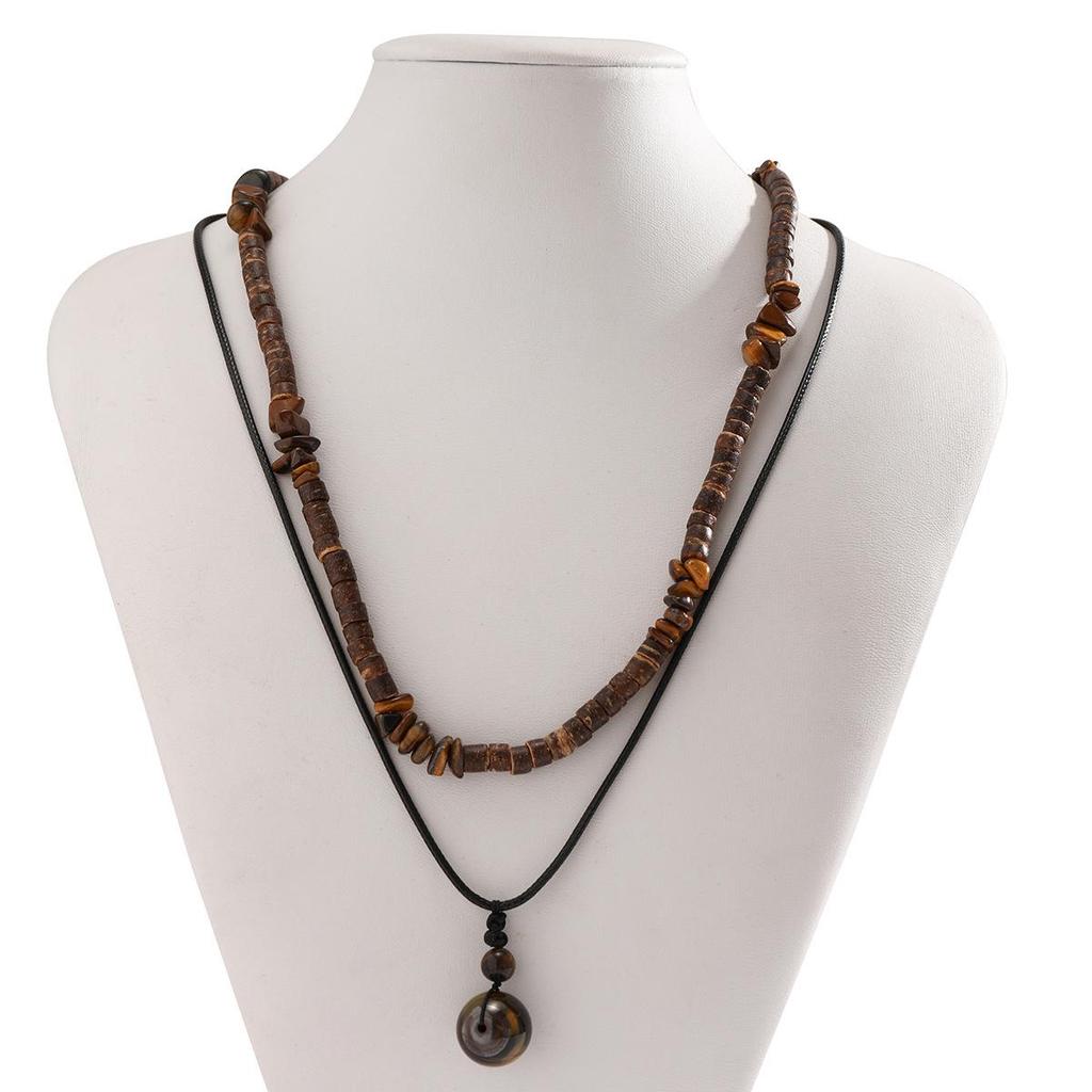 Men's European & American Turquoise and Wooden Beads Necklace Set - Simple, Versatile Sweater Chain