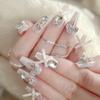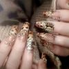 24pcs New Year Heavy Metal Press On Nails Chinese Bride Wedding Fake Nails Full Cover Wearable Shiny Large Crystal False Nails