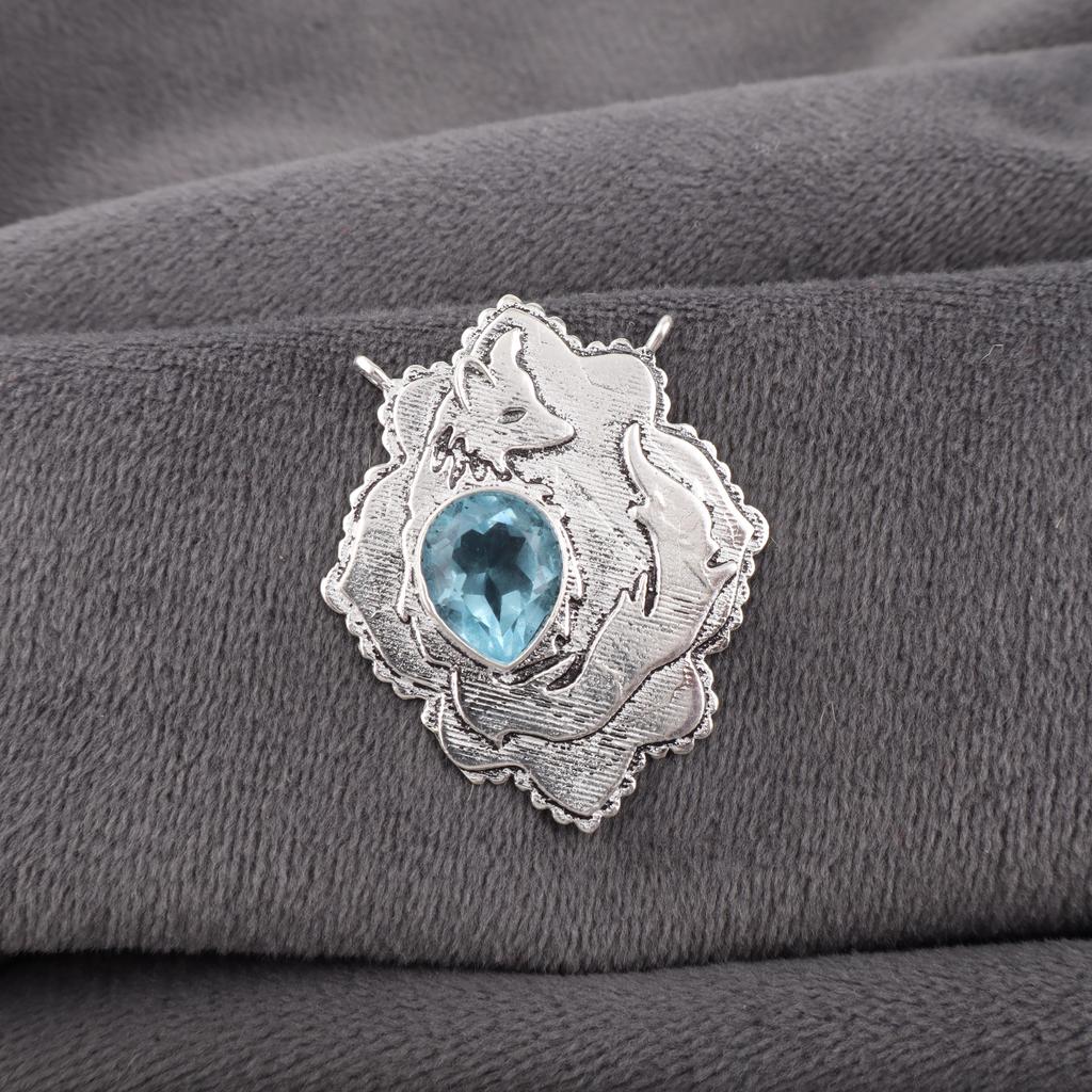 Sky Blue Topaz Gemstone Pendant, 925 Sterling Silver Jewelry, Handmade Lavish Silver Pendant Gift For Love