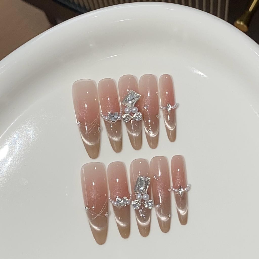 Pure Desire Ice-transparent Powder Gradient Smile Cat Eye Pearl Broken Diamond French Pile Diamond Jade Wear Armor