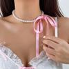 Velvet Imitation Pearl Bow Necklace - French Style Clavicle Jewelry for Women