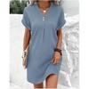 New Women's V-neck Solid Color Pullover Casual Button Dress