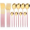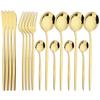 16Pcs Mirror Gold Dinnerware Set Stainless Steel Cutlery Set Fork Knife Coffee Spoon Tableware Silverware Kitchen Flatware Set