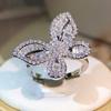 Sterling Silver Exquisite Big Butterfly White Zircon Ring Full Of Diamonds For Ladies Jewelry Party Wedding Birthday Gift