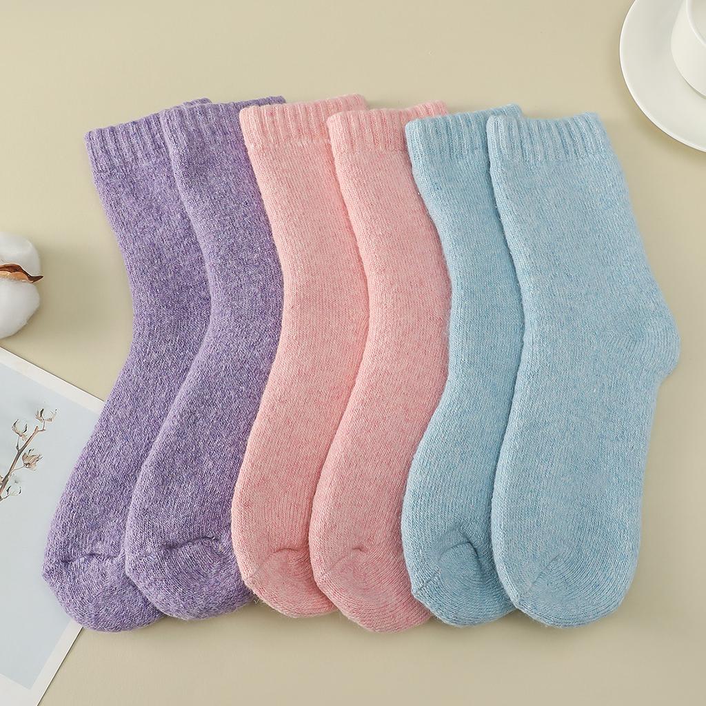 3 Pairs Women's Fleece Socks Autumn Winter Thicken Warm Socks Mid-Tube Solid Thermal Wool Socks Can Be Worn At Minus 40 Degrees