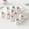 5 Pairs Cute White Socks Women Embroidered Short Ankle Socks Coffee Rabbit Bear Bowknot Love Heart Expression Cotton Boat Socks