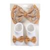 3Pcs/Set Solid Cotton Baby Non-Slip Socks Mini Ribbon Bow Boutique Gold Lace Elastic Hair Bands 0-12M Princess Girls Headwear
