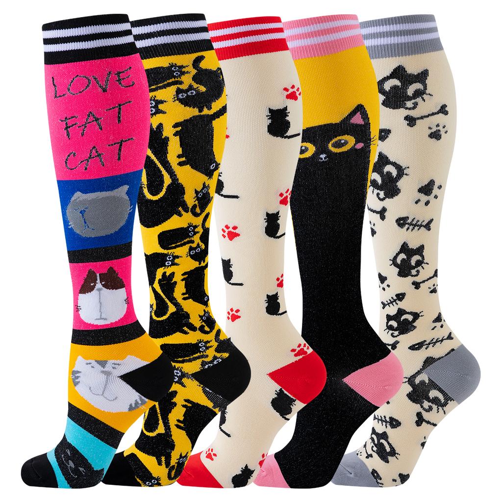 5 Pairs Cat Compression Socks Nurse Compression Socks Sport Knee High Compression Stocking
