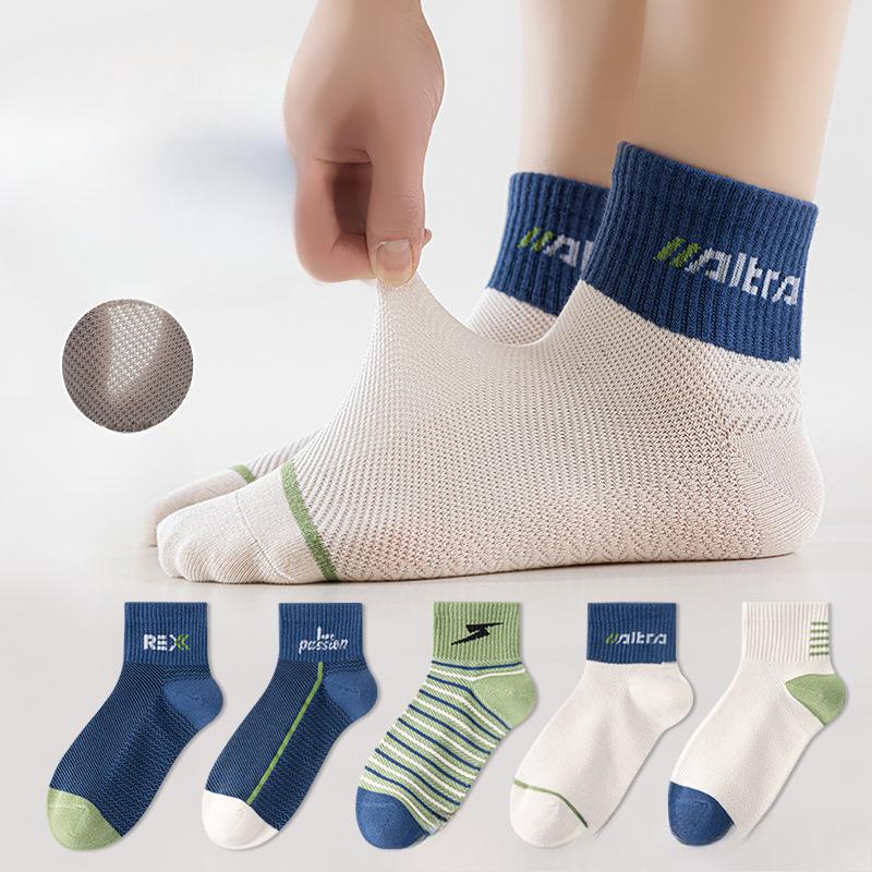 5 Pairs of Men's Summer Thin Breathable Sports Sweat Absorbing and Deodorizing Cotton Socks