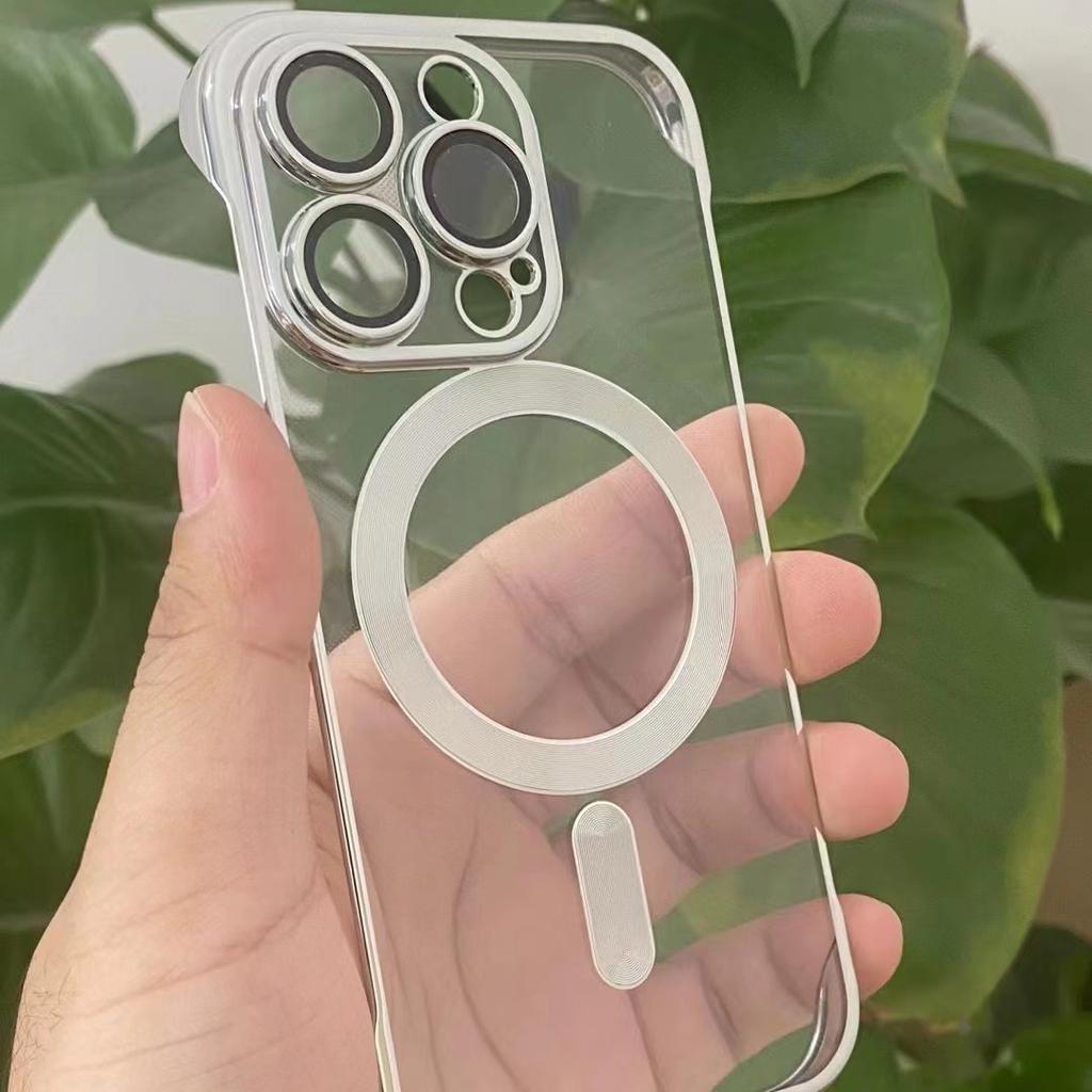 Applicable To IPhone 15 Mobile Phone Case Transparent PC Plating Frameless Apple 14 Comes with Lens Film Full-pack Hard Case