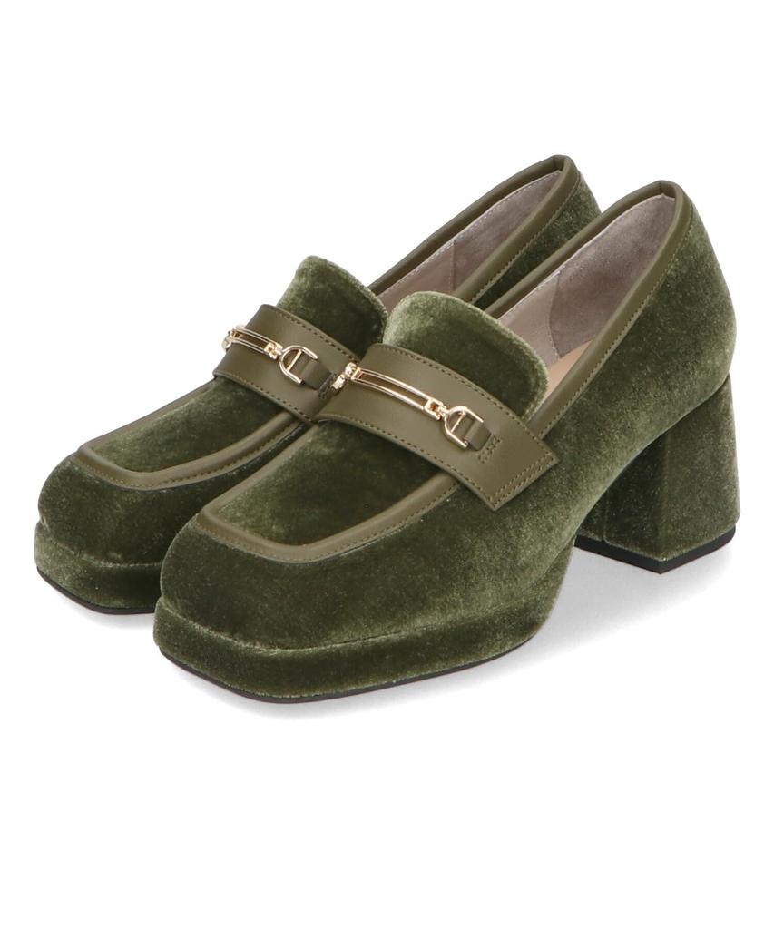 Oriental Traffic Thick Heeled Square 41303 Cm Pumps, Loafers, Sole, Velour, Autumn/Winter, Loafers, Toe, Women's, GREEN, 22.5