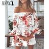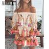 HNXC Women's Fashion Summer Spring Solid Color Print 1/2 Sleeves One Shoulder High Waist Casual Dresses