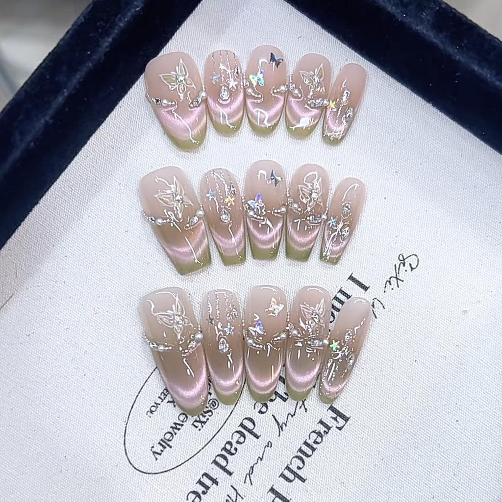 Hand-woven Armor Guava Dream Three-dimensional French Love Butterfly Cat Eye Style Nail Art Patch