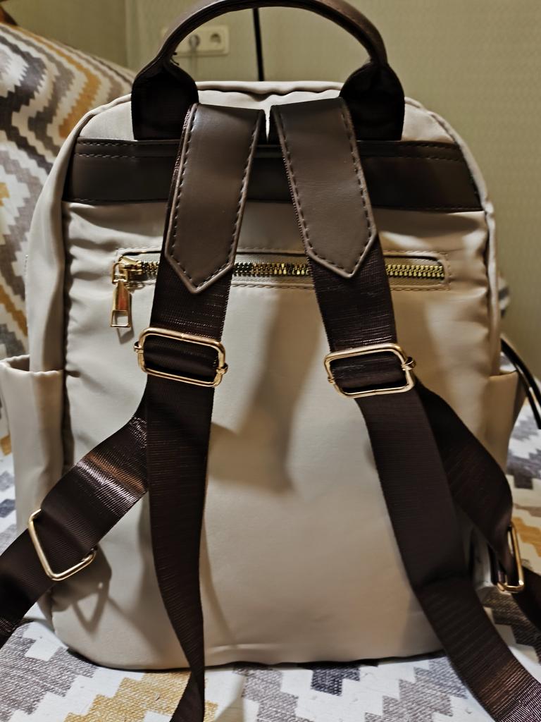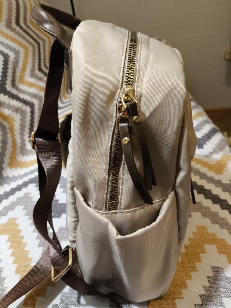 A good backpack of small size, lightweight. The zippers are plastic, I thought they would be metal. Overall the hardware is good. On the outside there are two zippered pockets and two open side pockets. Inside there is one zippered pocket and one open pocket. The quality of the material is good.