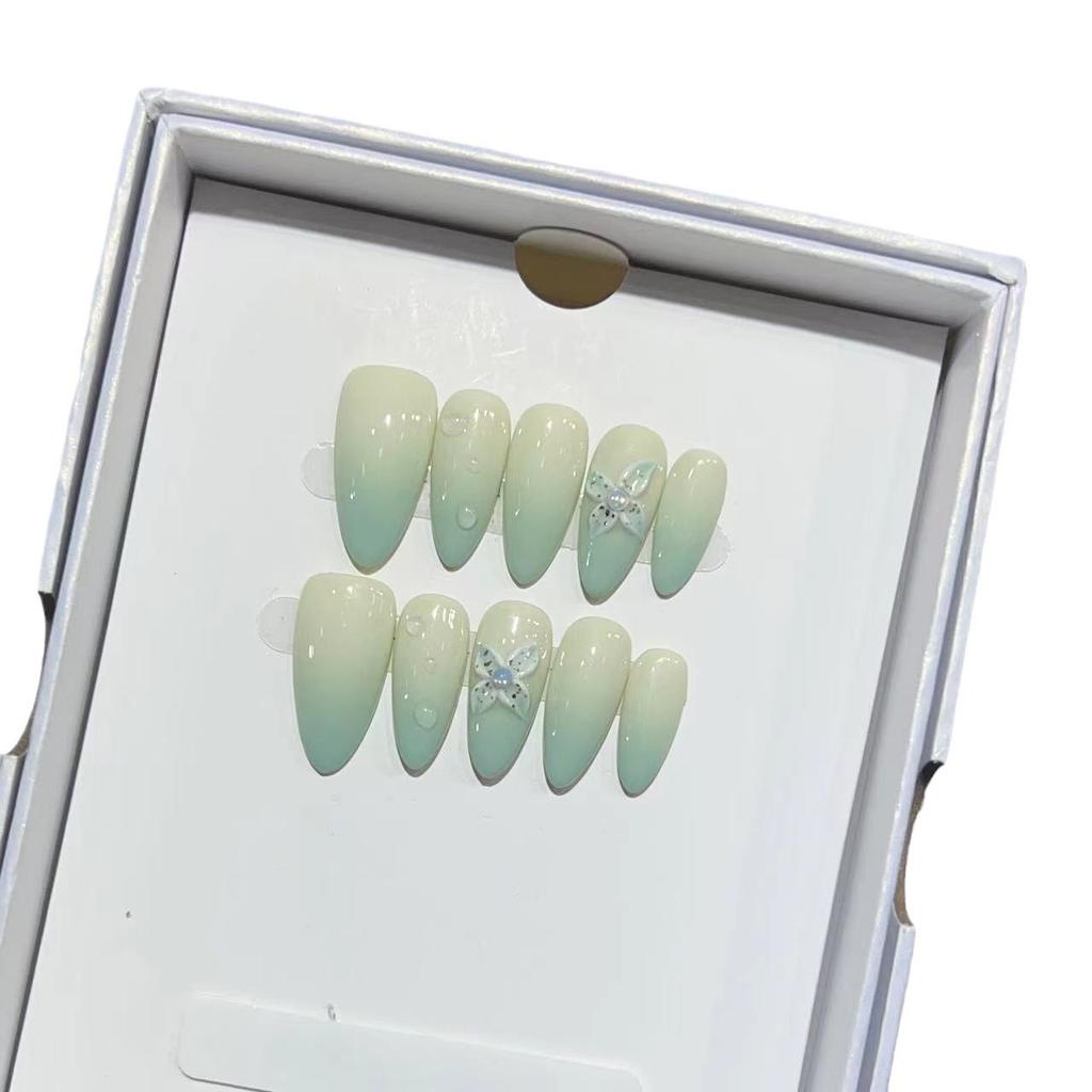 Almond Armor Wearing Armor Handmade Temperament High-end Carved Manicure Removable Fake Nail French Gradient