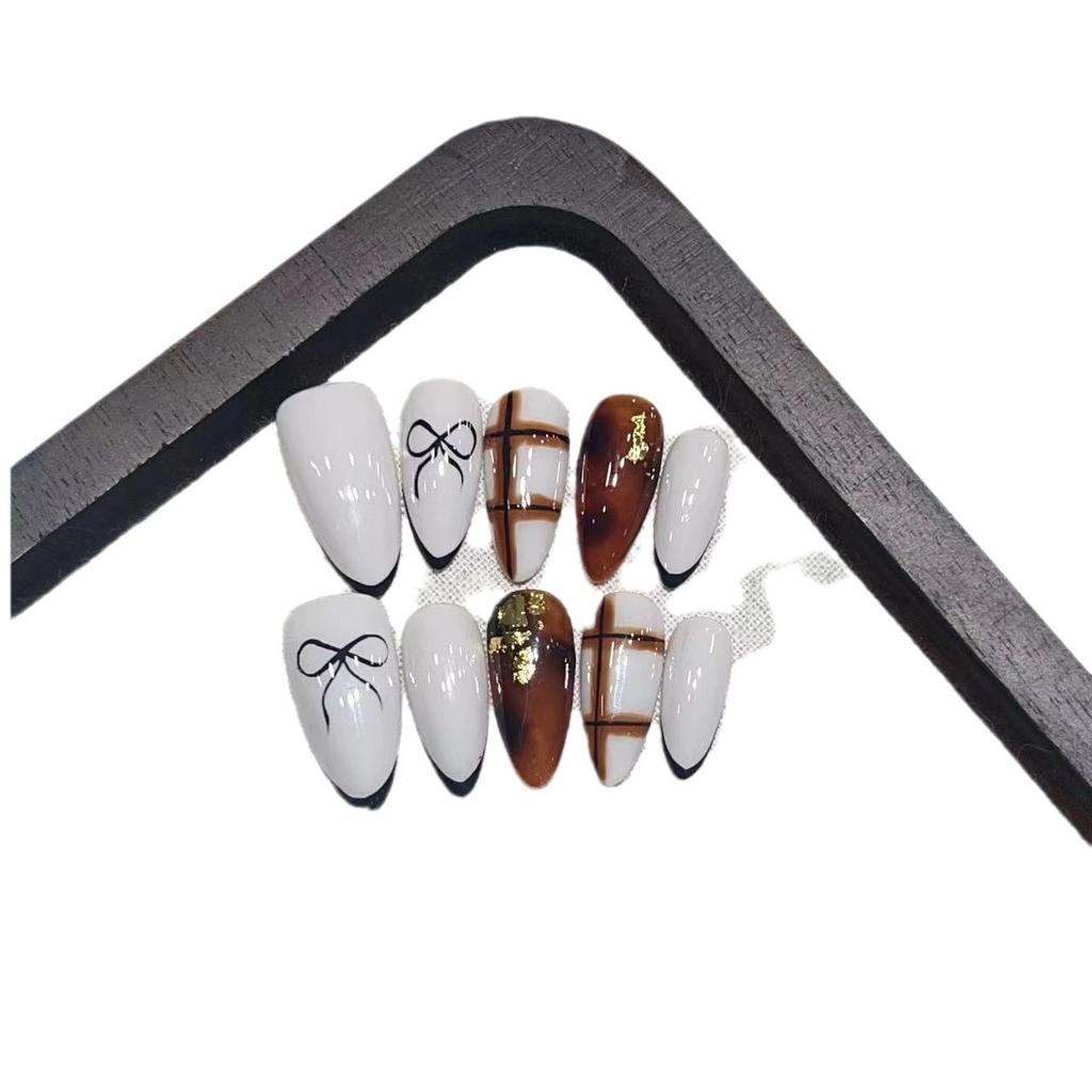 Wearing Nail Pieces with High-end Atmosphere Amber French Manicure Hot Style A Removable Fake Nail Stickers