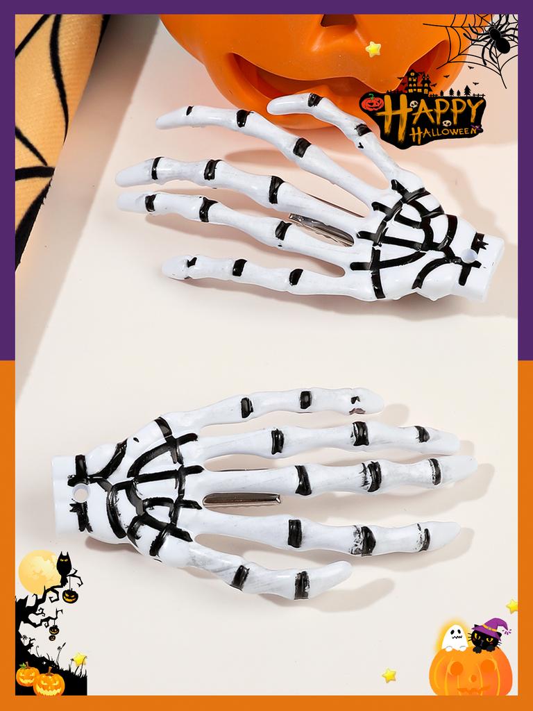 Size - Total 2 pieces white and black skull hand hair clips, each one approx 3 inches in length.