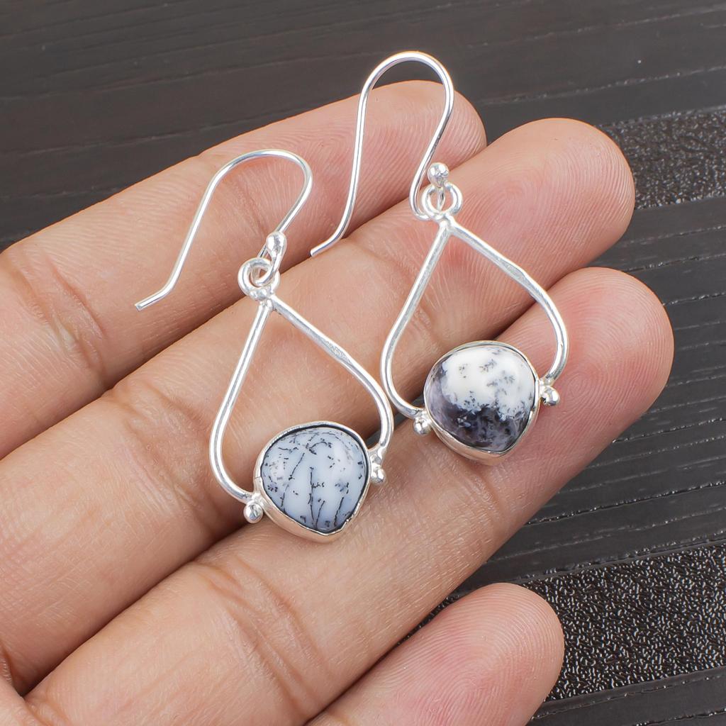 Dendritic Opal Gemstone Jewelry, Handmade Silver Earrings, 925 Sterling Silver Meditation Jewelry Gift For Her