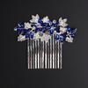 Rhinestones Blue Red Hair comb : bridal side Silver hair comb