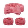 Flannel front bow elastic face wash makeup headband waterproof wrist cover set