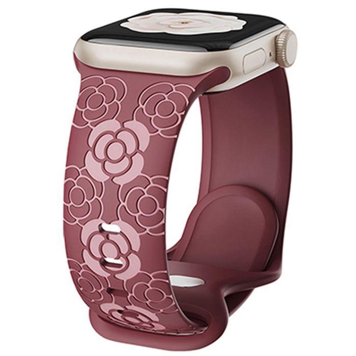 Bracelet for Apple Watch Series Ultra 2/3, 11, 10, 9 8 SE 7 6 5 4 3 2 1 46mm-45mm-44mm-42mm-49mm Red Silicone Floral Engraving